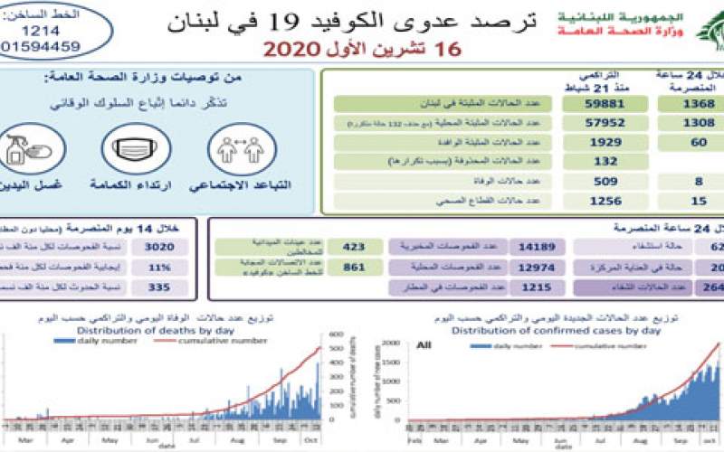 كورونا في لبنان.. 8 وفيات و1368 إصابة جديدة