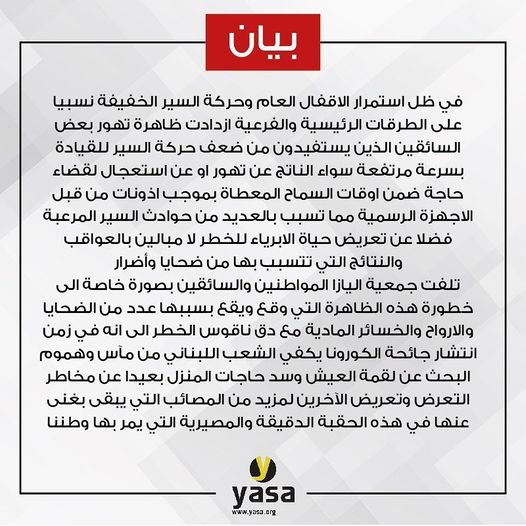 نداء اليازا لتخفيف حوادث السير المرعبة