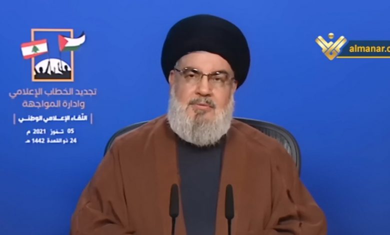 وأوضح السيد نصر الله ان “الخطاب الاعلامي الذي نريد ان نطوره يجب ان نعرف بمواجهة من؟ فهنا لا نتكلم عن الامور الداخلية او القطرية بل عن المشروع الاسرائيلي الصهيوني الاميركية والهيمنة في المنطقة وايضا الاحتلال الاسرائيلي لفلسطين والجولان ومزارع شبعا وتلال كفرشوبا والجزء اللبناني من قرية الغجر”، وأكد ان “الهيمنة الاميركي في المنطقة هي الاساس والاخطر لانها هي مشكلة بحد ذاتها وقائمة على سلب الخيرات ومنع شعوبنا من تقرير مصيرها”، وشدد على ان “هذه الهيمنة هي التي تحمي اسرائيل ولا يمكن تحرير فلسطين بمعزل عن مواجهة الهيمنة الاميركية في منطقتنا لانها هي التي حولت الجيوش الى هياكل ميتة وهذه الهيمنة هي التي تقدم كل عناصر البقاء للكيان الغاصب”.