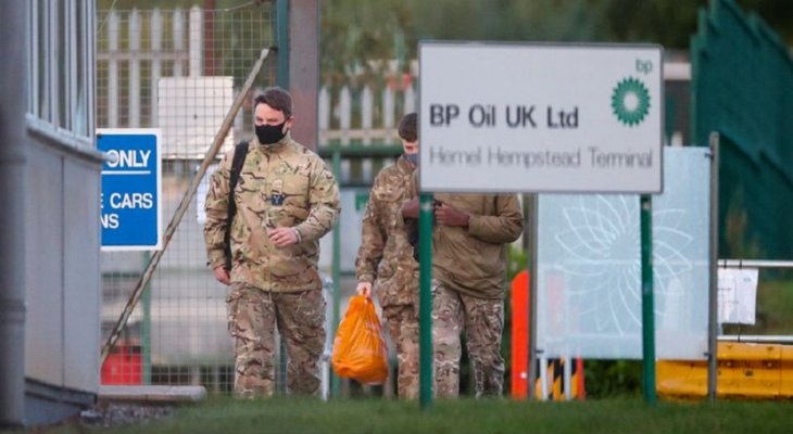 أفادت وكالة رويترز بأن أفراداً من الجيش البريطاني بزي القتال، وصلوا يوم الاثنين إلى مستودع لشركة “بي.بي”، بعدما أمرت الحكومة الجيش بالمساعدة في توصيل الوقود للمساهمة في التعويض عن نقص حاد في سائقي الشاحنات.