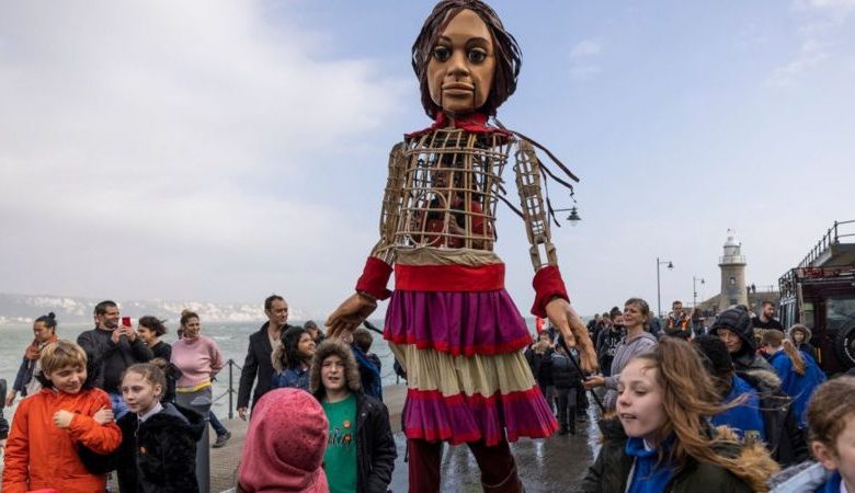 اهتمت افتتاحية صحيفة الغارديان بوصول أمل الصغيرة إلى مدينة فولكستون في المملكة المتحدة، وتسافر الدمية التي يبلغ طولها 3.5 متر من هناك إلى لندن وكوفنتري وأخيرا إلى مانشستر.