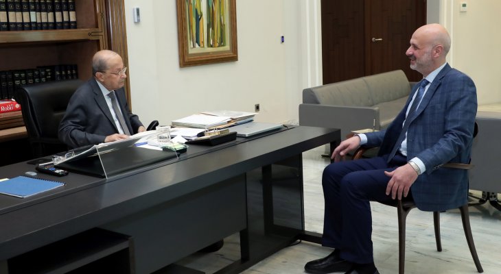 استقبل رئيس الجمهورية العماد ميشال عون بعد ظهر اليوم في قصر بعبدا، وزير الداخلية والبلديات القاضي بسام مولوي وعرض معه الأوضاع العامة في البلاد عموما، والأوضاع الأمنية خصوصا، إضافة الى عمل المديريات التابعة لوزارة الداخلية، كما تناول البحث موضوع الانتخابات النيابية المقبلة والإجراءات التي تتخذها الوزارة.
