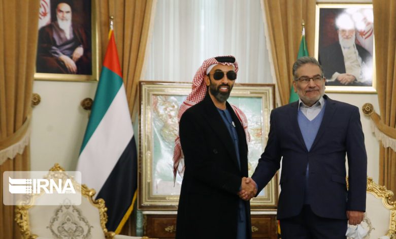 وخلال استقباله مستشار الأمن القومي الإماراتي طحنون بن زايد، في طهران، أكد شمخاني “ضرورة عدم تأثر دول المنطقة بالتدخلات الخارجية”، مضيفاً “يجب اعتماد الحوار والتفاهم بدل الاعتماد على النهج العسكري لحل الخلافات”.