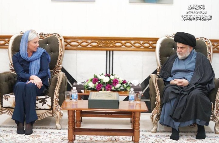 أجرت ممثلة الأمم المتحدة في العراق، هينيس بلاسخارت محادثات في النجف جنوب العاصمة العراقية بغداد، مع زعيم التيار الصدري مقتدى الصدر.