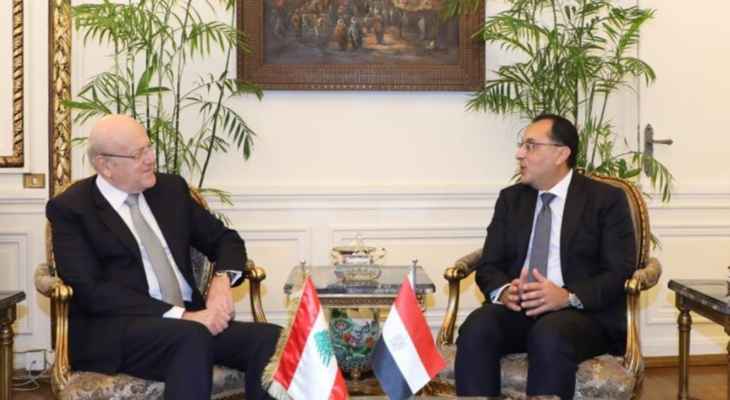وأجرى ميقاتي ورئيس وزراء مصر مصطفى مدبولي محادثات ثنائية، ظهر اليوم في مقر رئاسة الحكومة المصرية في القاهرة. وأعقب الاجتماع الثنائي محادثات موسعة شارك فيها، عن الجانب المصري مساعدة رئيس مجلس الوزراء راندة المنشاوي، الامين العام لمجلس الوزراء اللواء عاطف عبد الفتاح ومساعد وزير الخارجية للشؤون العربية السفير علاء موسي. وحضر عن الجانب اللبناني السفير في مصر علي الحلبي والمستشار الديبلوماسي لميقاتي السفير بطرس عساكر.