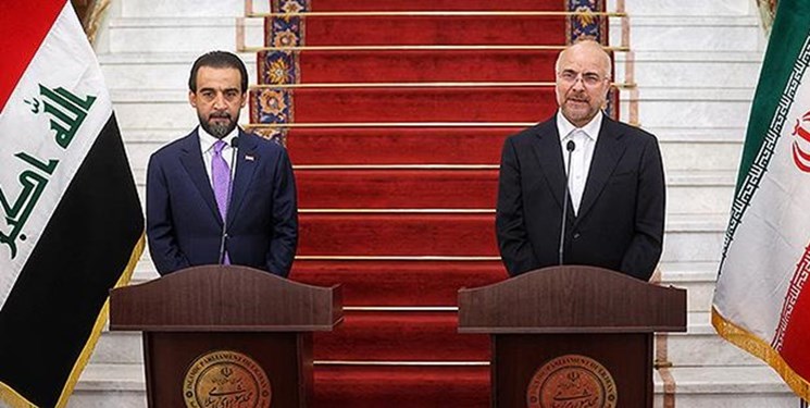 وفي مؤتمره الصحفي المشترك مع رئيس مجلس النواب العراقي محمد الحلبوسي بعد محادثات في طهران الاربعاء، اعرب قاليباف عن سعادته لزيارة الحلبوسي والوفد المرافق له طهران، قائلاً ان “سياسة الجمهورية الاسلامية الايرانية في المجلس والحكومة الحالیین تتمثل في تنمية العلاقات مع الدول مع اولوية الدول الجارة والاقليمية”، داعياً إلى “توطيد العلاقات الاقتصادية والسياسية والثقافية وبالأخص التعاون في مجال البيئة”.