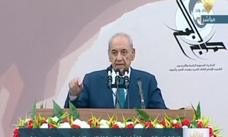 أكد رئيس مجلس النواب نبيه بري في كلمة ألقاها في احتفال أقامته حركة “أمل” في الذكرى الـ44 لتغييب الإمام موسى الصدر في ساحة القسم في مدينة صور ، ان””جريمة الاختطاف تمت ونفّذت على أيدي النظام الليبي والامام ورفيقيه لم يغادروا ليبيا”.