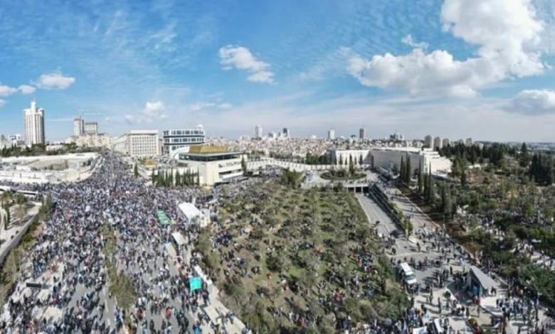 نحو 90 ألف مستوطن يتظاهرون ضد حكومة نتنياهو بالقدس المحتلة