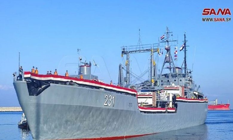 وصول سفينة مصرية إلى ميناء اللاذقية محملة بنحو 500 طن من المساعدات الإغاثية