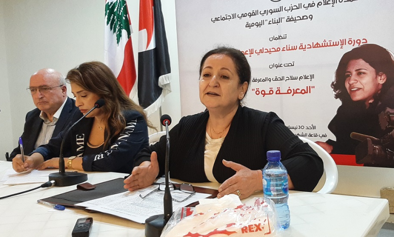 تواصلت في “قاعة الشهيد خالد علوان” في بيروت، محاضرات دورة الاستشهاديّة سناء محيدلي للإعداد الإعلامي التي تُنظّمها عمدة الإعلام في الحزب السوري القومي الاجتماعي وجريدة “البناء”، فقدّمت الكاتبة والإعلامية فاطمة الطفيلي محاضرة تمحورت حول مخارج الحروف وقواعد النطق والتنفس في الخطابة والحوار، وتناول رئيس تحرير البناء النائب السابق ناصر قنديل موضوع قواعد السلوك والحضور والإيتيكيت الإعلامي في إطار تطبيقيّ. وقدّمت للمحاضرين وكيل عميد الإعلام رمزا صادق.